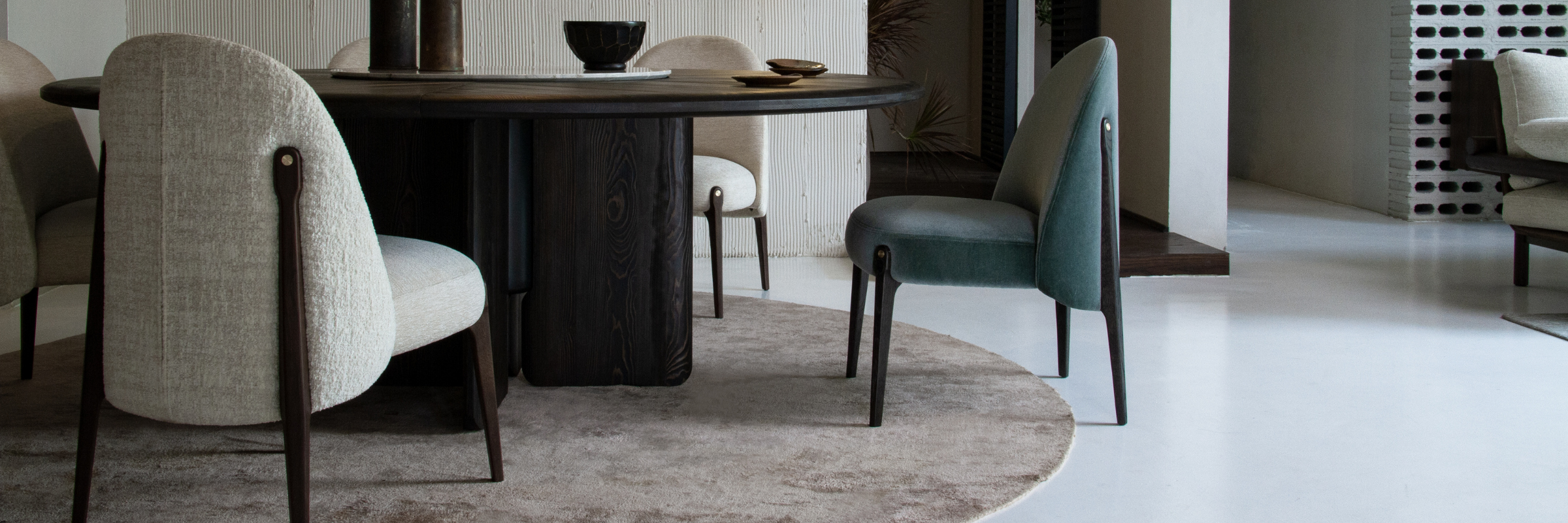 Inspired by the shape of a spade, the Ames chair delivers comfortable seating upholstered in hand-picked fabric. The collection boasts effortless elegance while retaining our signature industrial finish for its sculpted oak frame.