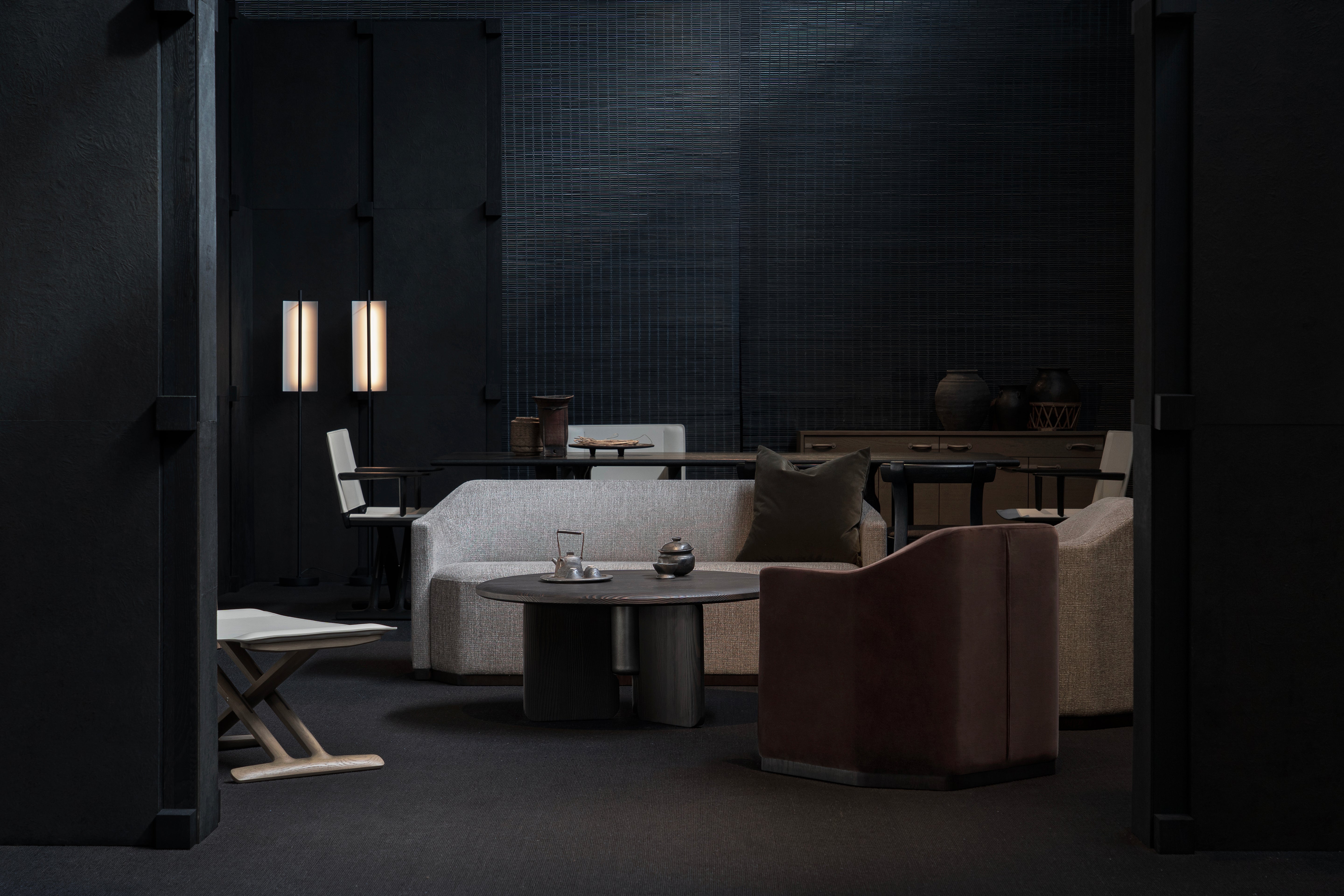 Our new sofa collection is inspired by the ancient diagram of bagua, in which the relationships of yin and yang are illustrated through symbols arranged in octagonal formations. An eight-sided oak base underpins the sofa’s grounded structure. With full upholstery enfolds its enveloping contour, the seat bestirs plenitude of comfort. Perfect for intimate nooks or modest spaces, BAGUA casts a strong, graceful presence that blends well with contemporary decorations and lifestyles.