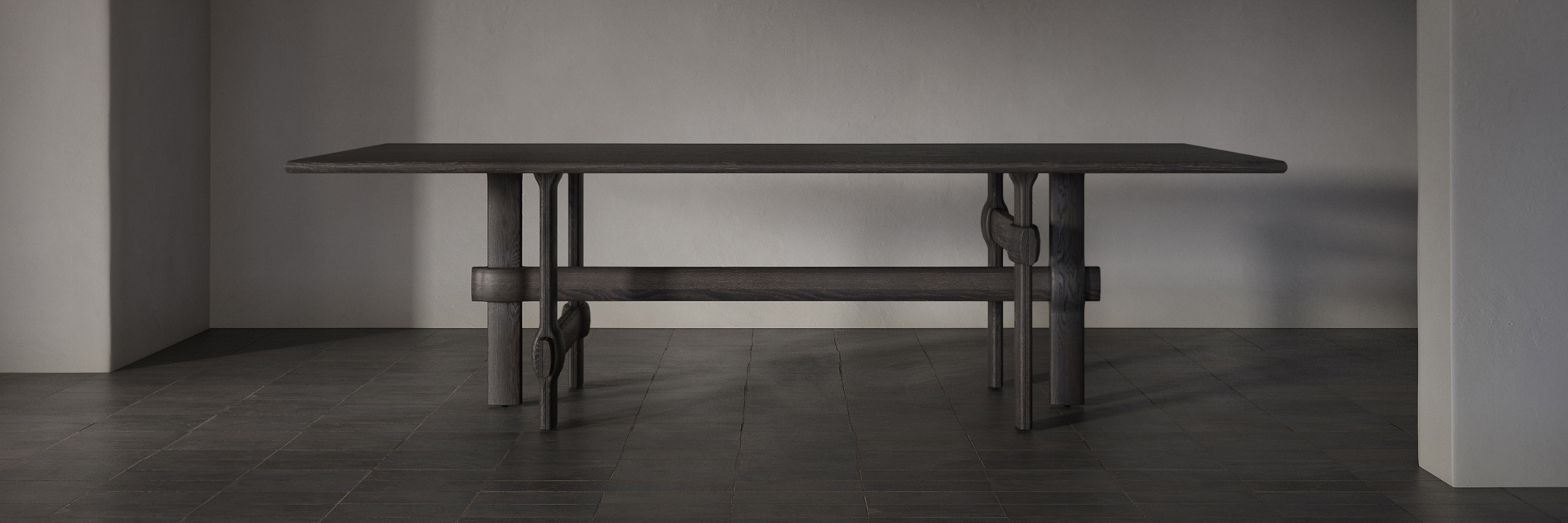 Crafted with attentive craftsmanship, each table in the Knot collection features intricate Asian weaving patterns that create a gentle rhythm between the legs.