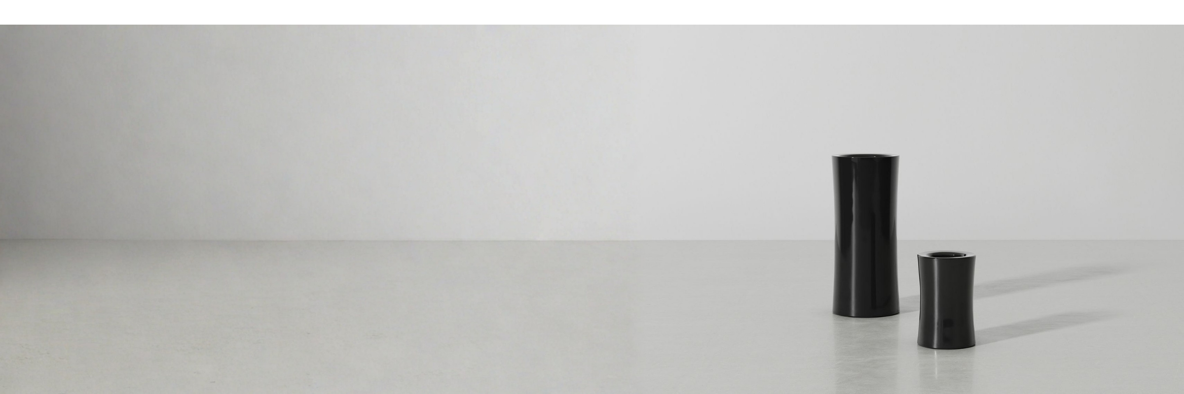 The Pipe Vase by studioutte features a softly concave cylindrical form inspired by bamboo, finished with hand-painted lacquer in black or oxblood for a refined, silky touch.